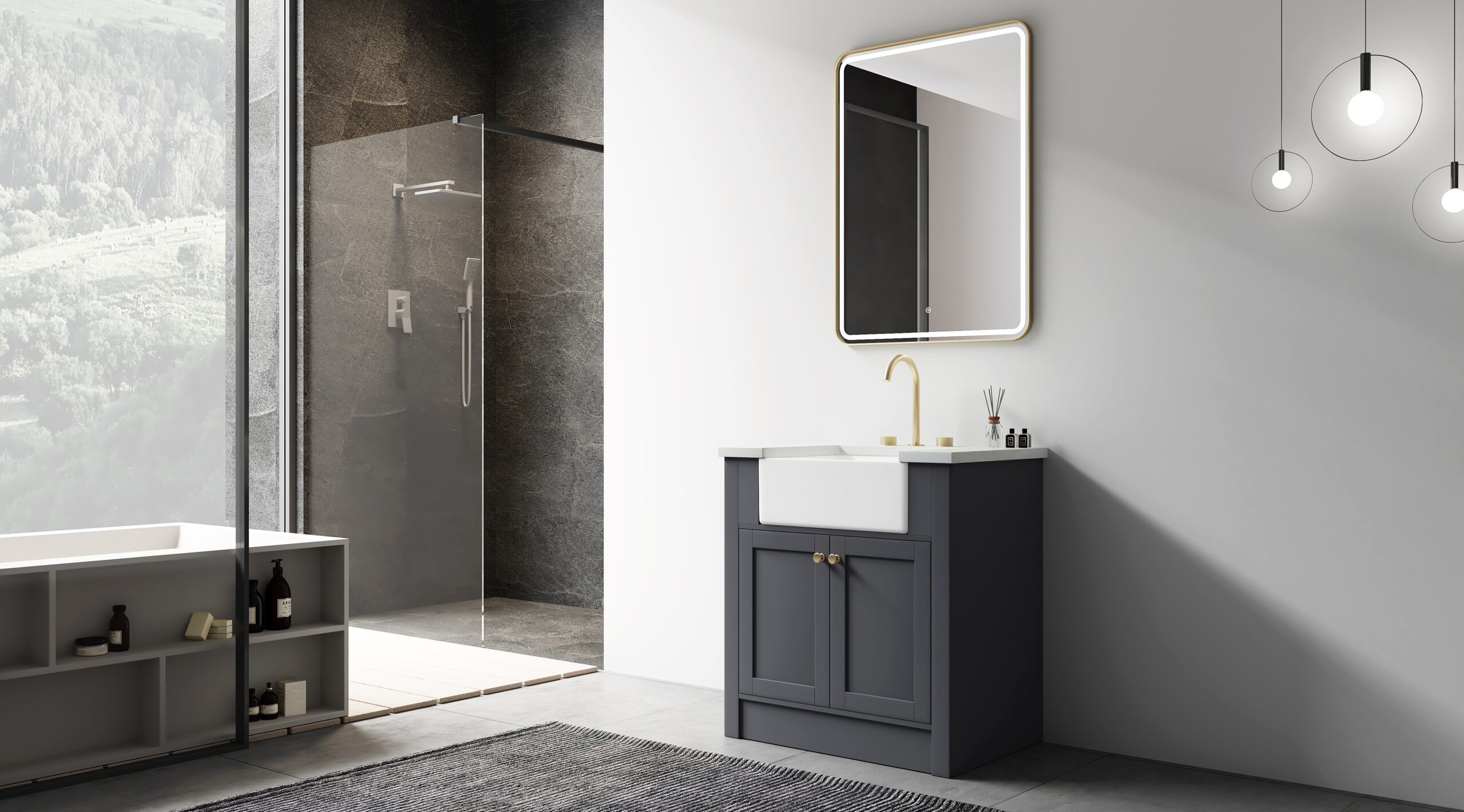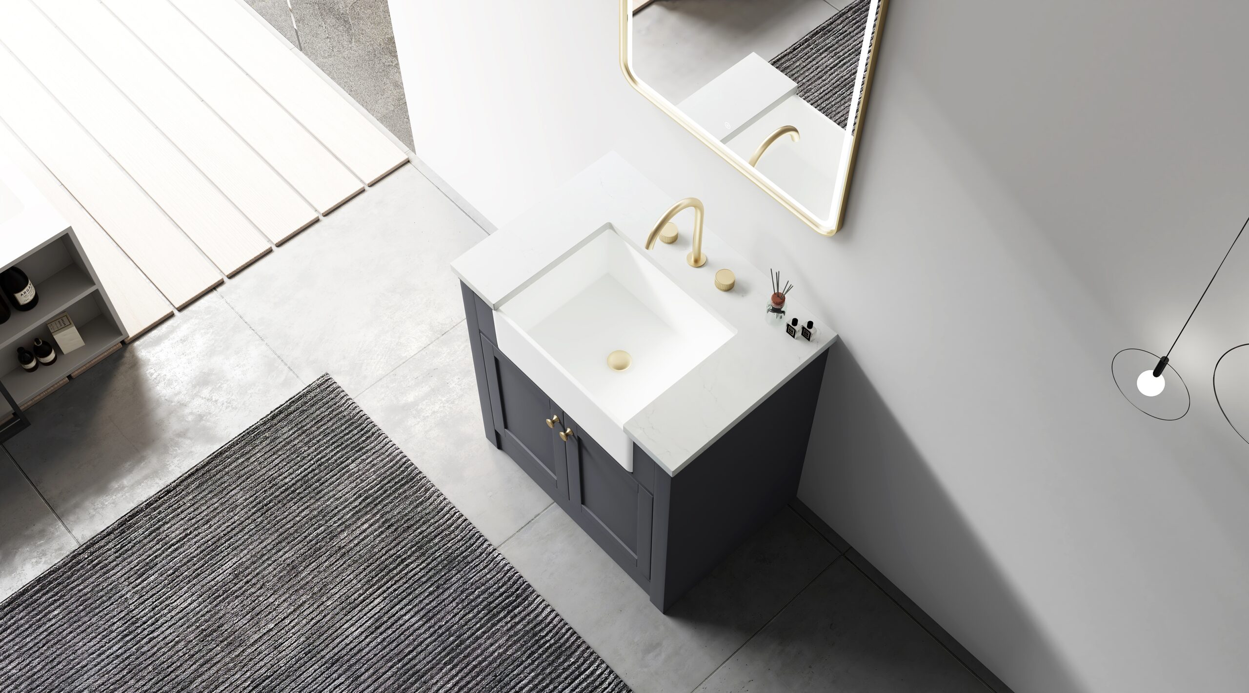 Single Vanity Configuration Single-user vanity design with efficient layout and practical storage.