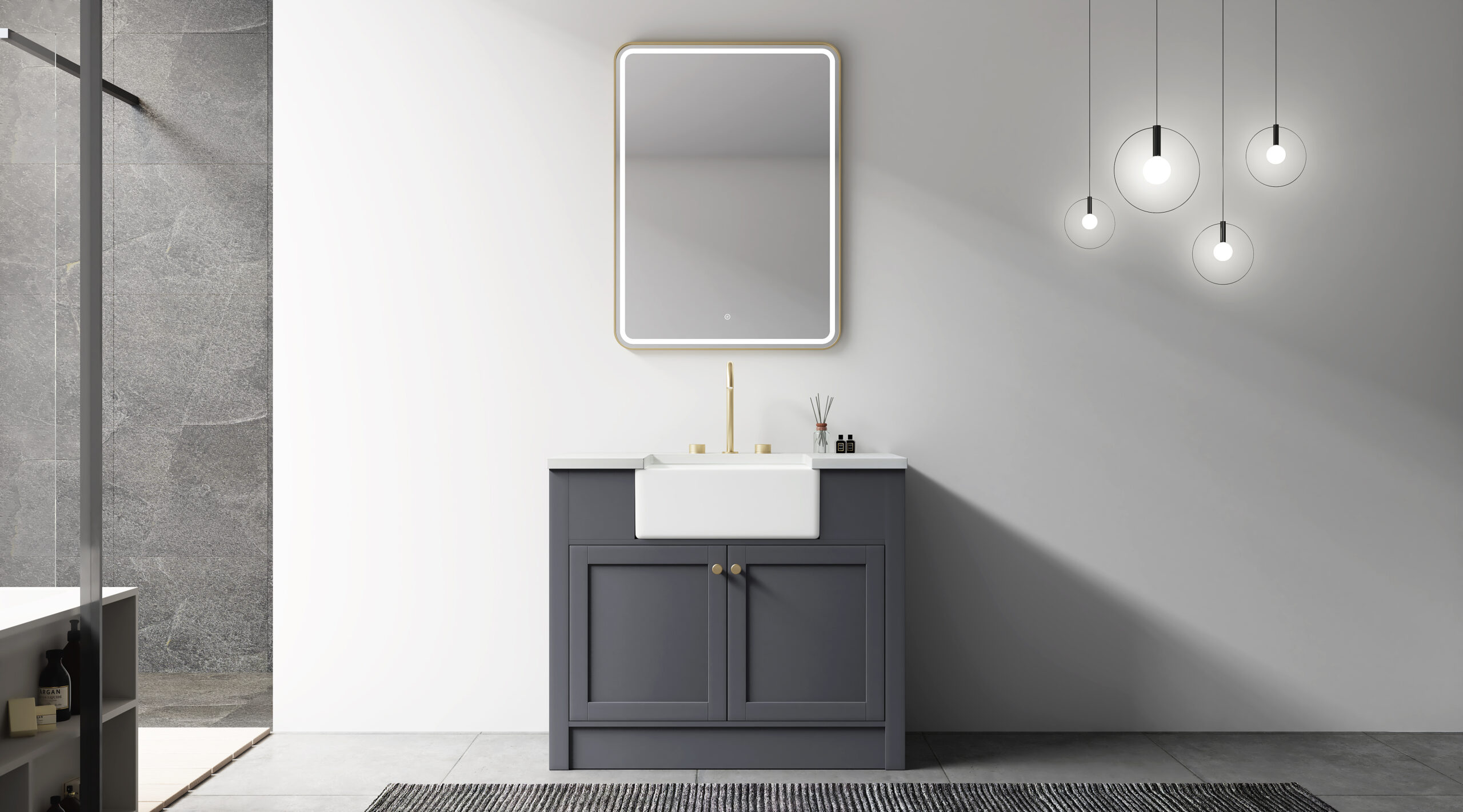 Single Vanity Configuration Single-user vanity design with efficient layout and practical storage.